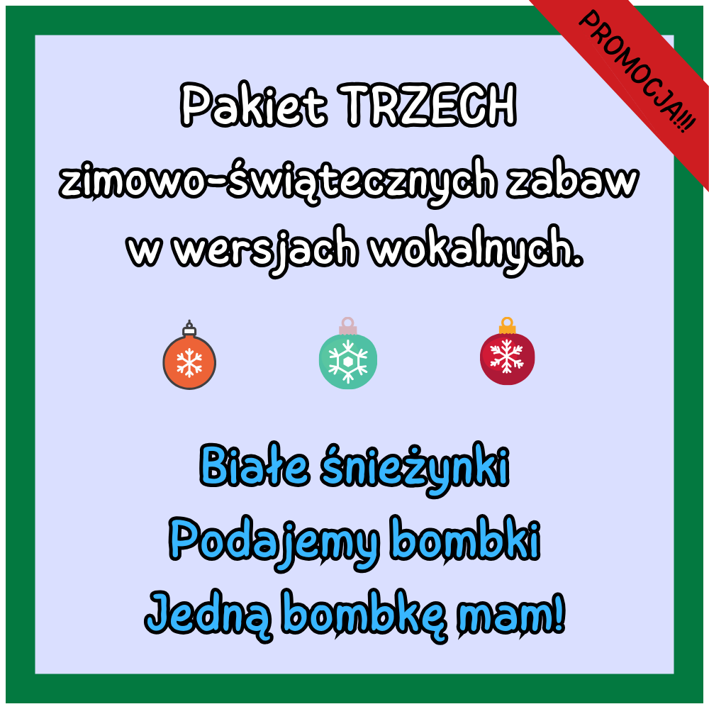 Pakiet zawiera zestaw trzech zabaw w wersjach wokalnych: